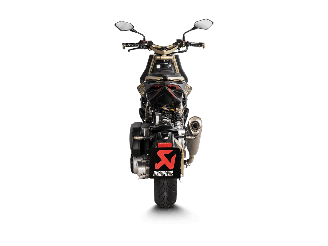 Slip-Ons sind der erste Schritt in Tuning einer Auspuffanlage. Das System ist einfach zu installieren und ersetzt einen Serienschalldämpfer. Es bietet zudem das beste Preis-Leistungs-Verhältnis. Das Akrapovic Slip-On System bedeutet für Sie: mehr Leistung, mehr Drehmoment und weniger Gewicht. Mit dem Akrapovic Slip-On System bekommt Ihr Scooter diesen unverkennbaren tiefen und satten Akrapovic Sound, und auch das äußere Erscheinungsbild ändert sich dramatisch. Jedes Produkt hat feinste Akrapovic Endkappen aus Karbon. passend auf den originalen Krümmer Verbindungsrohr aus Edelstahl- V4A Hexagonal-Dämpfer ohne Zulassung im öffentlichen Straßenverkehr Schalldämpfer-Hülle aus Titan Schalldämpfer-Endkappe aus Titan alle metallischen Teile des Schalldämpfers aus Titan (auch das komplette Innenleben) optionales Carbonhitzeschild (muss extra bestellt werden) mit dB-Eater