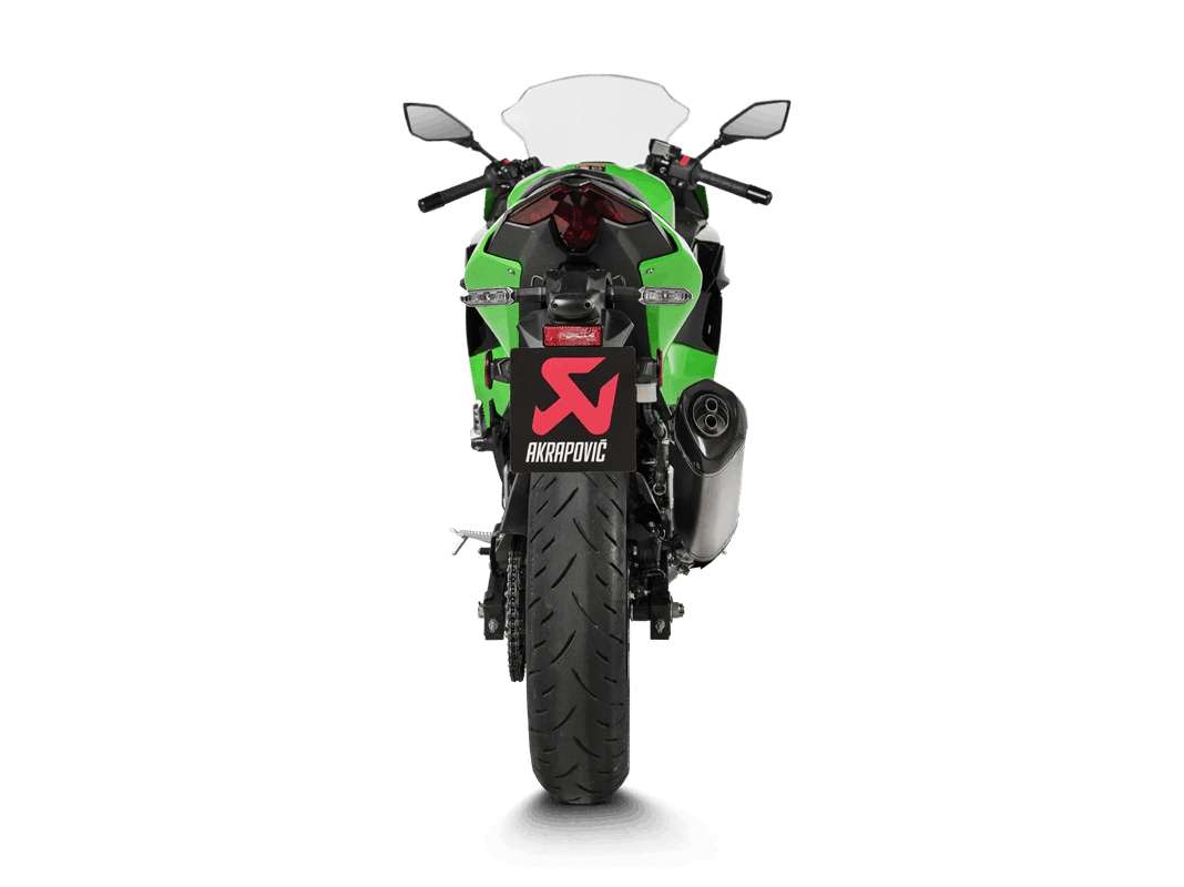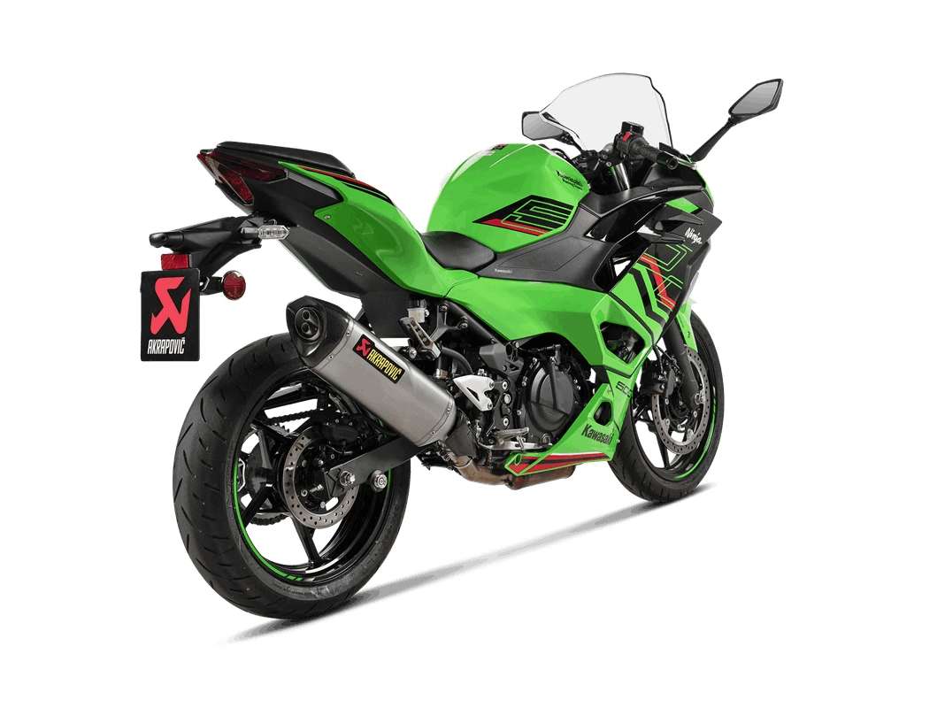 Akrapovic Slip-On Line Titan für Kawasaki Ninja 500 / Z 500 – Euro5+ Der Akrapovič Slip-On Line Schalldämpfer aus Titan für die Kawasaki Ninja 500 und Z 500 überzeugt durch modernste Technik, geringes Gewicht und einen markanten, tiefen Sound. Der neu entwickelte Hexagonal-Dämpfer verfügt über eine geprägte Titanoberfläche, die nicht nur optisch beeindruckt, sondern auch für zusätzliche Festigkeit und Langlebigkeit sorgt. Für Fahrerinnen und Fahrer, die ein zusätzliches optisches oder performanceorientiertes Upgrade wünschen, ist optional ein Carbon-Hitzeschild erhältlich. Zudem kann ein Akrapovič Fächerkrümmer montiert werden, um Leistung und Rennsound weiter zu steigern – Hinweis: Mit Einbau des Fächerkrümmers erlischt die EG/ECE-Typgenehmigung der Slip-On Line. ✨ Die Highlights für Ihre Kawasaki Ninja 500 / Z 500: Im Vergleich zur serienmäßigen Abgasanlage wird eine Gewichtsersparnis von 32 % (ca. 1,3 kg) erzielt. Akrapovič-Ingenieurinnen und -Ingenieure legten bei der Entwicklung besonderen Fokus auf verbessertes Ansprechverhalten, optimierte Performance und eine sportlich-edle Optik. Der Schalldämpfer besteht aus einer hochwertigen Titan-Außenhülle, einer Carbon-Endkappe sowie Verbindungsrohren aus Titan. Das komplette Innenleben inklusive aller metallischen Komponenten ist ebenfalls aus Titan gefertigt. Ergänzt wird das System durch integrierte Titan-Hitzeschilde sowie eine durchdachte Innenstruktur. Auf dem Akrapovič-Prüfstand wurde gegenüber der Serienanlage eine Leistungssteigerung von +0,3 kW (0,4 PS) bei 8.750 U/min sowie ein Drehmomentzuwachs von +0,3 Nm bei 5.000 U/min gemessen. Dank Plug-and-Play-Montage ist kein ECU-Re-Mapping erforderlich. Der Slip-On ist passend für den originalen Krümmer und verfügt über eine EG/ECE-Typgenehmigung nach Euro5+, gültig ab Modelljahr 2024. Ein dB-Eater ist selbstverständlich im Lieferumfang enthalten. ⚙️Technische Details und Kompatibilität: Hexagonaler Akrapovic Schalldämpfer mit EG-Typgenehmigung Schalldämpfer-Hülle aus Titan Endkappe aus Carbon (handgefertigt) Verbindungsrohr aus Titan Komplettes Innenleben aus Titan Inklusive Titan-Hitzeschild(en) Euro5+ konform Mit dB-Eater Optionales Carbon-Hitzeschild (separat erhältich) Plug-and-Play Montage, kein Re-Mapping notwendig
