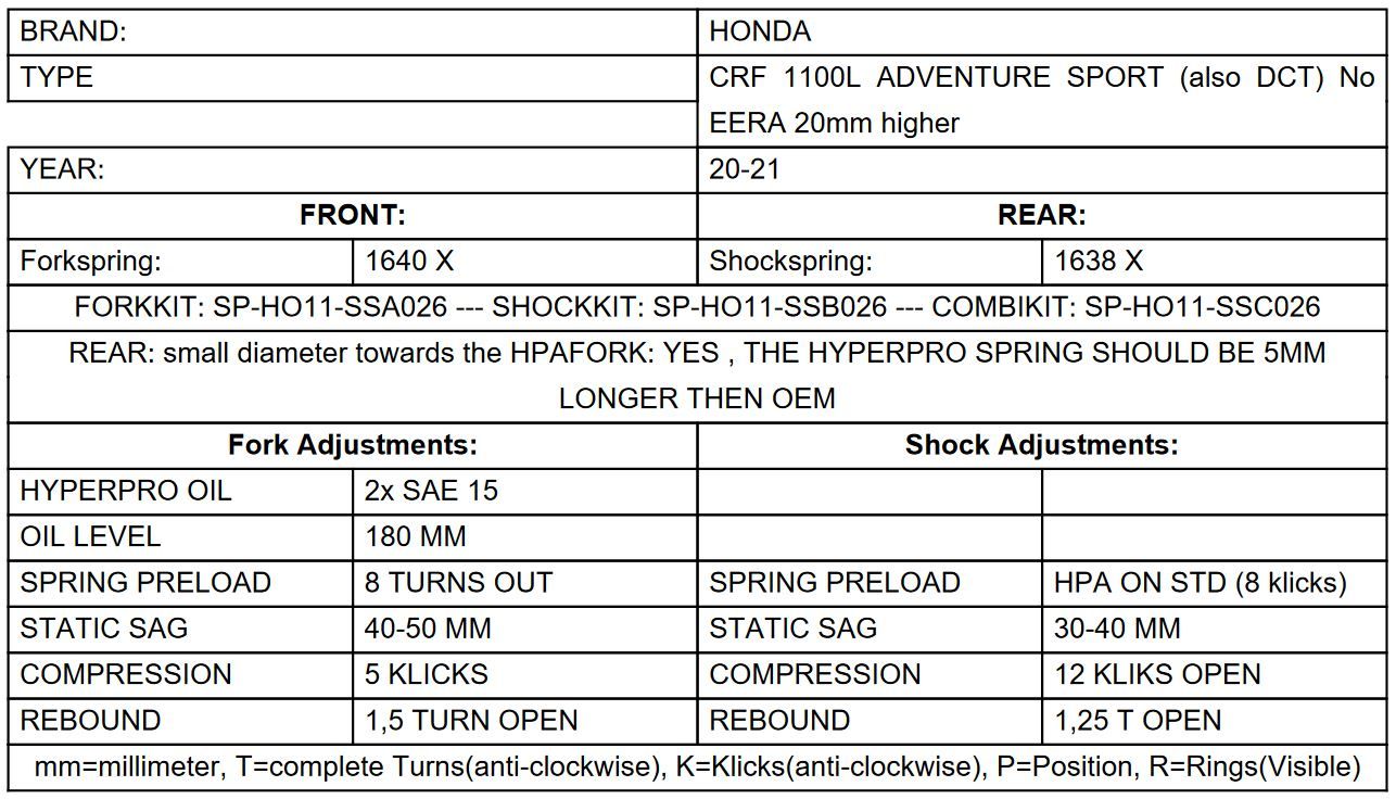 Diese progressiven Austauschfedern realisieren + 20mm mehr Bodenfreiheit. Die Federrate ist auf straffes Ansprechverhalten und hohe Reserven bei schwerer Beladung mit den Original Federelementen ausgelegt. Die Federn sind perfekt auf das original Federbein und die Gabel der Honda CRF1100L Adventure Sports abgestimmt. Ihr Motorrad hat nach dem Umbau eine kostengünstige und optimierte Abstimmung, für die Anforderungen des Off Road - Motorradreisens.