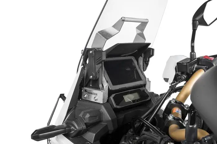 Mit unserem "Anbaudadapter über den Instrumenten" haben Sie ihr GPS oder auch Roadbook immer fest im Blick. Keine Ablenkung mehr zur Seite oder nach unten, die Augen bleiben auf die Straße gerichtet.