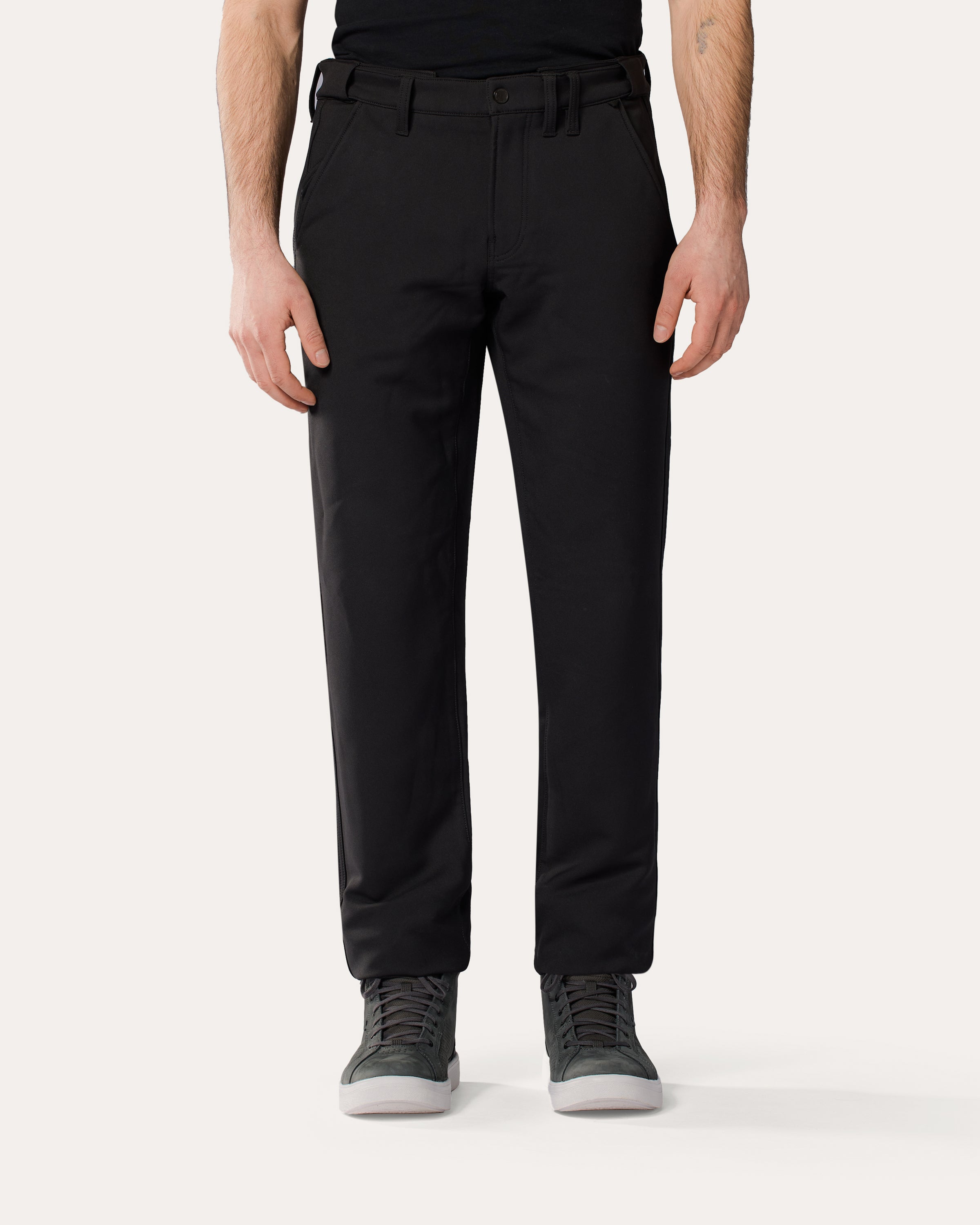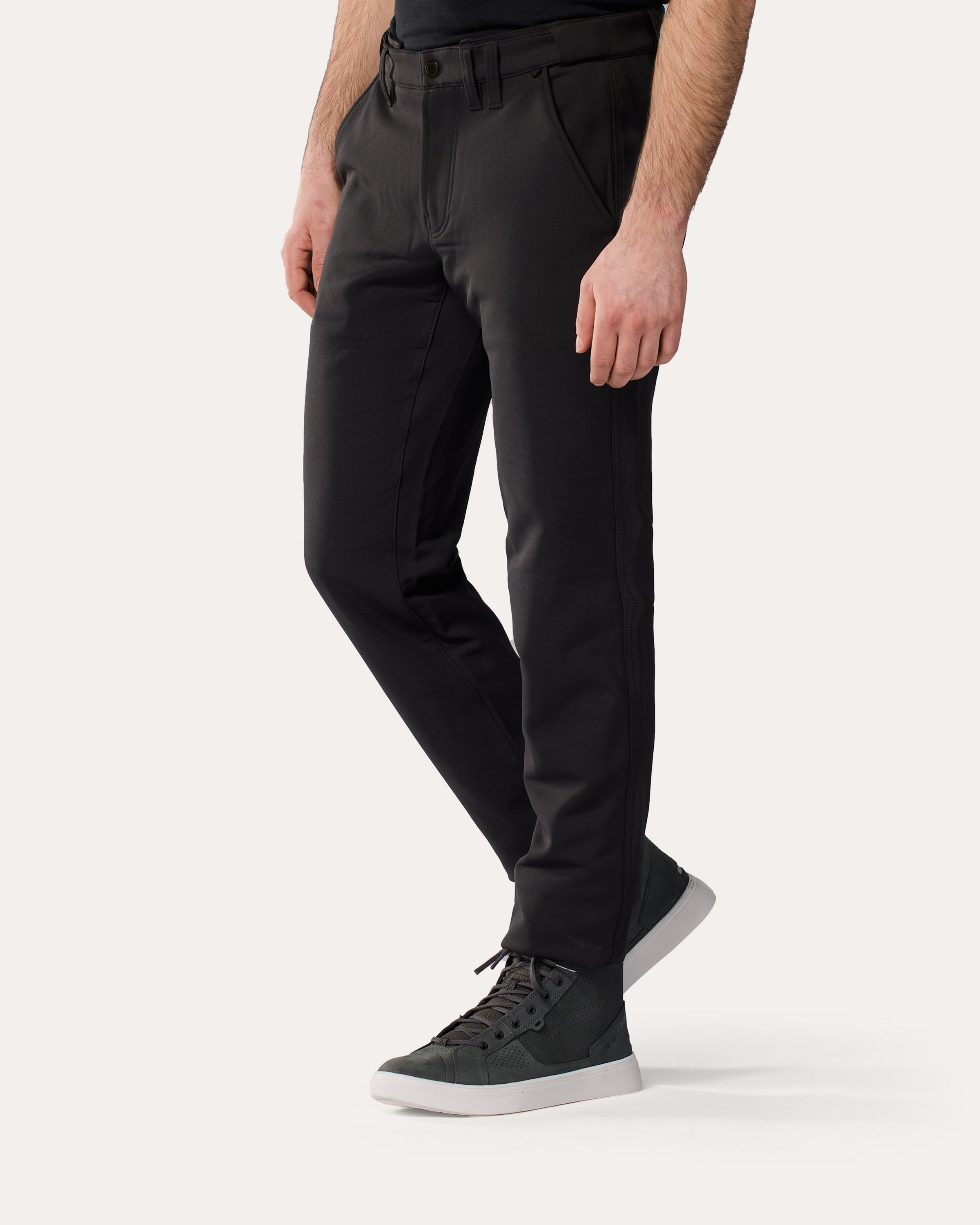 Dort, wo sich urbaner Chic, bequemer Stil und die Liebe zum Motorradfahren kreuzen, wurde die Mason Slim Chino genau für diese Aufgabe geschaffen.Eine Liga für sichDie Mason Slim Chinos sind eine Klasse für sich. Elegant, anspruchsvoll und voller innovativer Funktionen. Wir verwenden dasselbe DWR-Fleece wie bei der Parabolica 2 Hose, um dieser Chino einen Jogger-Vibe mit einer klassischen Silhouette zu verleihen. Außerdem verwenden wir ein „unsichtbares“, eingearbeitetes Gummiband im Taillenbund, das flach anliegt und sich beim An- und Ausziehen der Hose mühelos dehnt.Das Wichtigste in der Nähe habenAufgrund der stromlinienförmigen, abgeschrägten Vordertaschen und ihrer Slim-Fit-Form wollten wir sicherstellen, dass du dein Handy und deine persönlichen Gegenstände immer in der Nähe hast, ohne dir Sorgen zu machen. Für diesen Komfort haben wir eine Handytasche hinzugefügt. Paspeltaschen am Gesäß sind ebenfalls vorhanden.Gesehen werdenAuch wenn sie einen dunklen Farbton hat, wollen wir, dass die Fahrer gesehen werden. Aufgrund des verwendeten Materials haben wir uns entschieden, den reflektierenden Streifen an der Außenseite in der Nähe der Seitennaht anzubringen, damit du gesehen werden kannst.