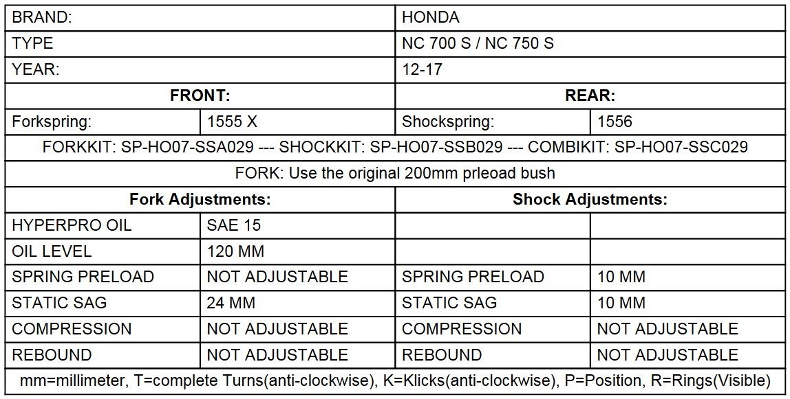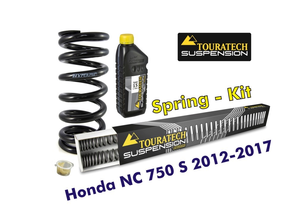 Diese progressiven Austauschfedern sind perfekt auf die Gabel und das Federbein der Honda NC750S abgestimmt. Das Federbein und die Gabel haben so eine bessere Abstimmung für die Anforderungen des Motorradreisens. Zu dem werden sie ein deutlich verbessertes Ansprechverhalten und höhere Reserven im Grenzbereich erfahren. Die Austauschfedern werden vom holländischen Fahrwerksspezialisten Hyperpro in Europa gefertigt.