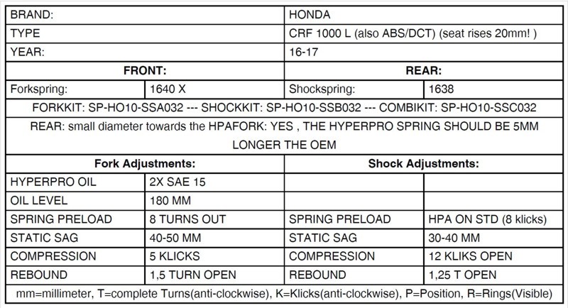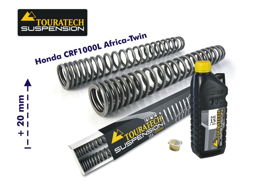 Diese progressiven Gabelfedern realisieren 20mm Anhebung des Frontbereiches. sportlicheres Ansprechverhalten und höhere Reserven im Grenzbereich mit den Original Honda Gabel. Die Gabelfedern sind perfekt auf die original die Gabel der Honda CRF1000L Africa Twin in Kombination mit unseren Touratech Suspension Federbeinen geeignet. Ihre Honda CRF1000L Africa Twin erhält so wesentlich mehr Fahrwerksreserven und ist damit perfekt auf die Anforderungen des Off Road - Motorradreisens vorbereitet.