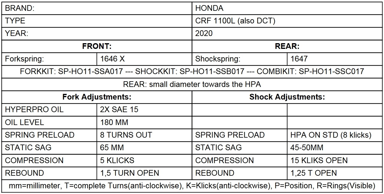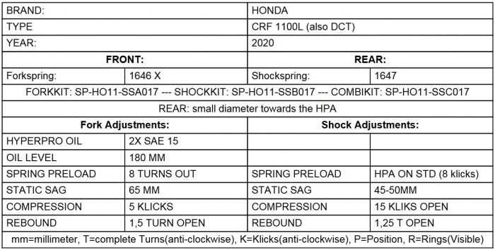 Bei allen Fahrwerkslösungen sollten Heck- und Frontbereich des Motorrades angepasst werden. Die passende Komponenten für das Heck der Honda CRF1100L Africa Twin finden sie in unserer Zubehörempfehlung Beim Austausch nur einer Komponente, wird kein optimales Fahrverhalten erzielt.