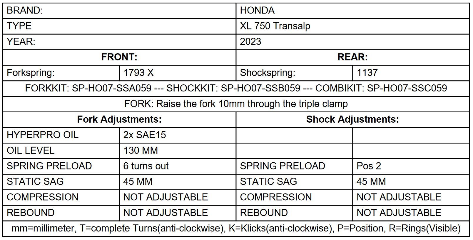 Bei allen Fahrwerkslösungen sollten Heck- und Frontbereich des Motorrades angepasst werden. Die passende Komponente für das Heck der Honda XL 750 Transalp finden sie in unserer Zubehörempfehlung. Beim Austausch nur einer Komponente, wird kein optimales Fahrverhalten erzielt.